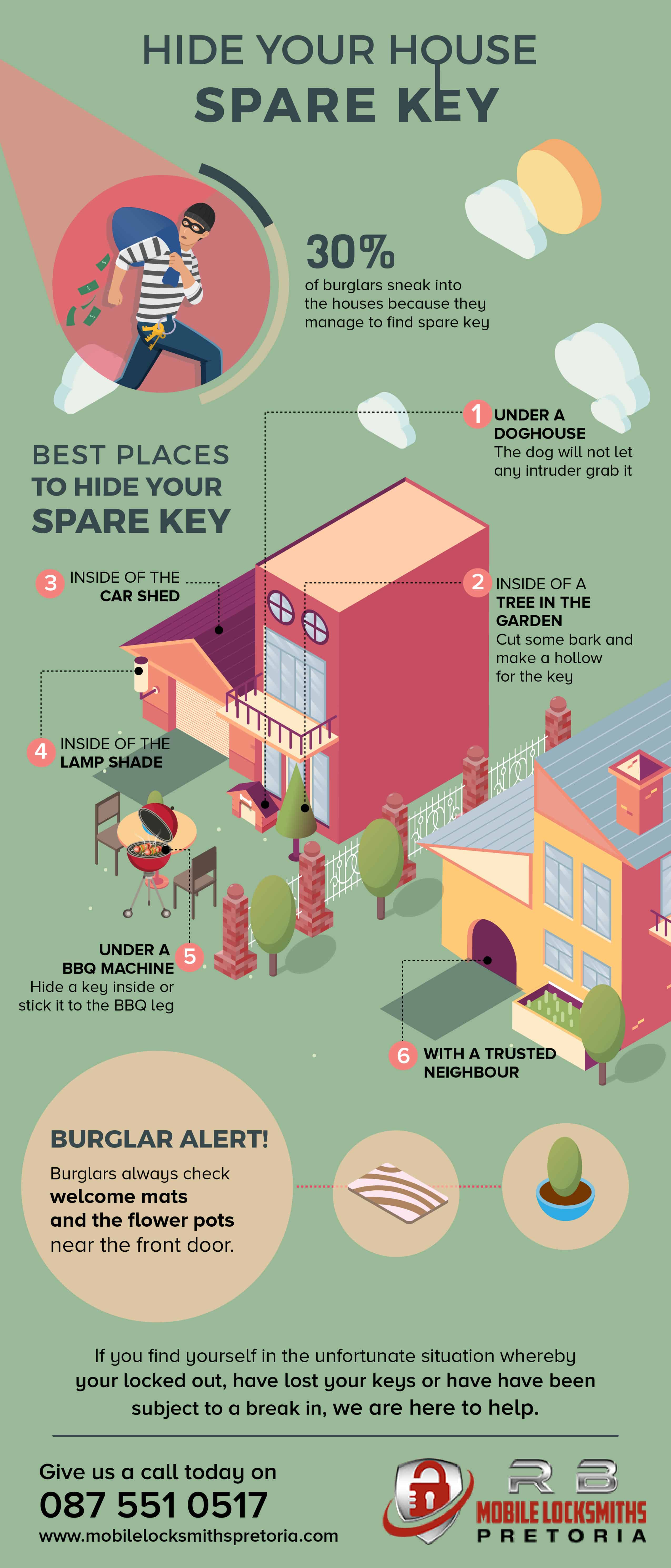 You should never hide your spare keys in obvious places where burglars will look. Such places include under welcome mats and inside flower pots that are near the main door. However, even after taking all precautions, you may still find yourself locked out of your house. If you do, call our Pretoria based RB mobile locksmiths on 087 551 0517. We supply all locksmith services for both individual and corporate property owners at an affordable rate. We are on call round the clock and our locksmiths are fully trained to handle any job you have. Make a booking with us today by visiting our site at https://www.mobilelocksmithspretoria.com/.
